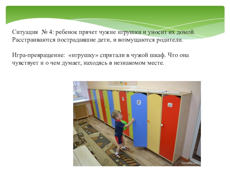 Слайд 17Ситуация № 4: ребенок прячет чужие игрушки и уносит их домой.