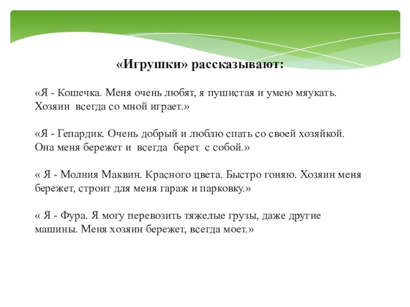 Слайд 10«Игрушки» рассказывают: