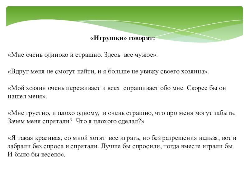 Слайд 14«Игрушки» говорят: