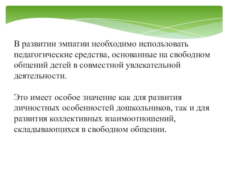 Слайд 6В развитии эмпатии необходимо использовать педагогические средства, основанные на свободном общений
