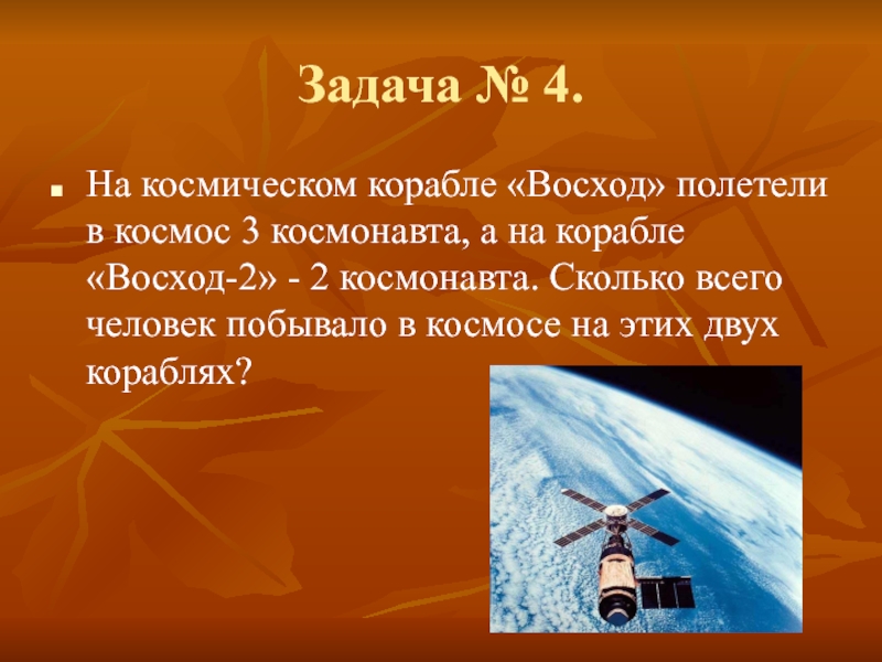 а на корабле «Восход-2» - 2 космонавта. Сколько всего человек побывало в космосе на этих двух кораблях?