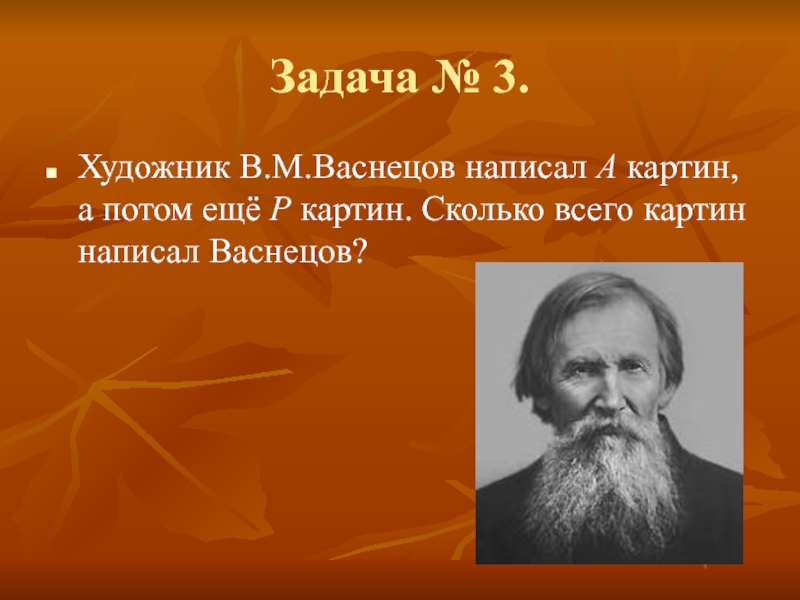 Художник В.М.Васнецов написал А картин, а потом ещё Р