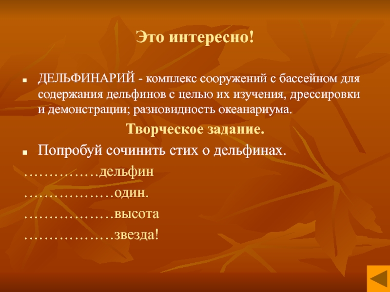 Попробуй сочинить стих о дельфинах.