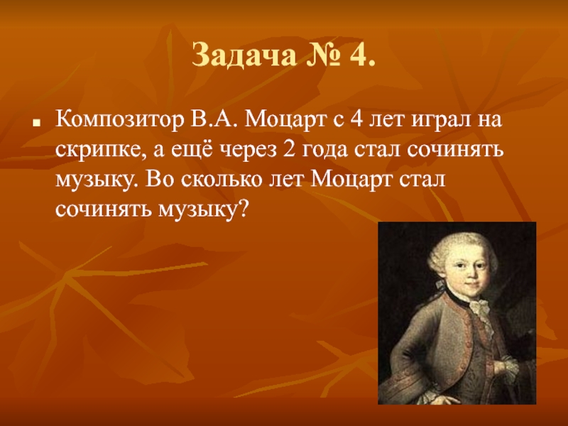 а ещё через 2 года стал сочинять музыку. Во сколько лет Моцарт стал сочинять музыку?