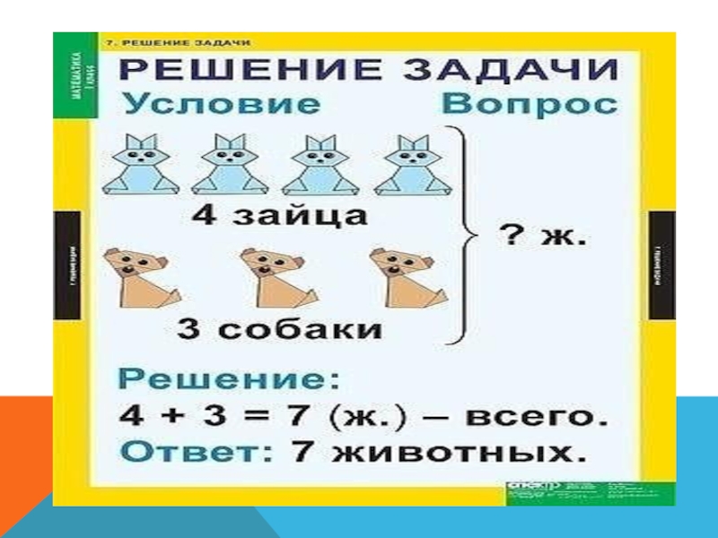 Решение простых задач в 1 классе. учитель начальных классов. Мишина О.В.