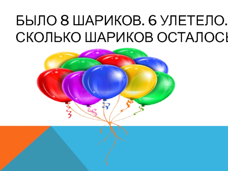 Слайд 10Было 8 шариков. 6 улетело. Сколько шариков осталось?