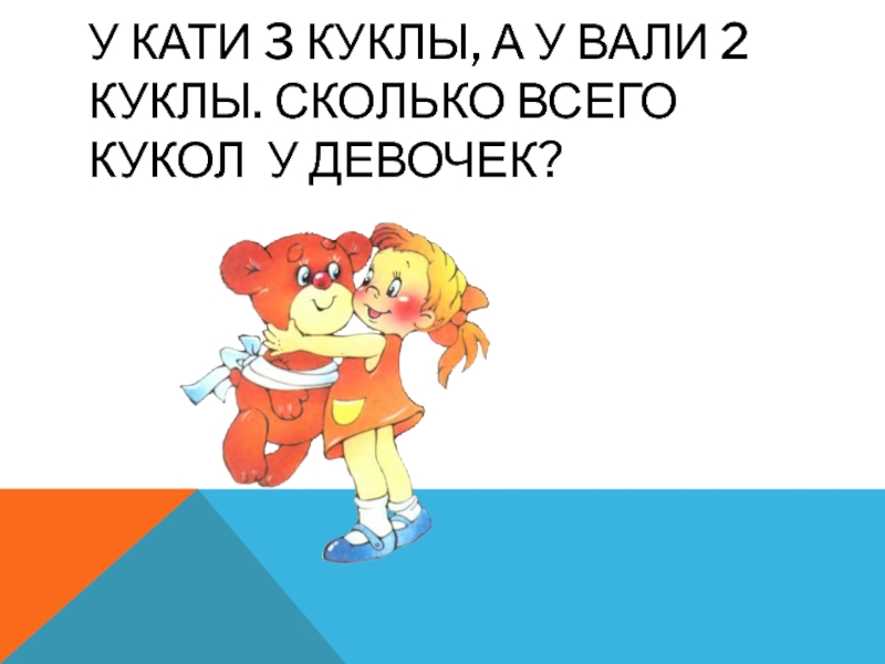Слайд 11У Кати 3 куклы, а у Вали 2 куклы. Сколько всего