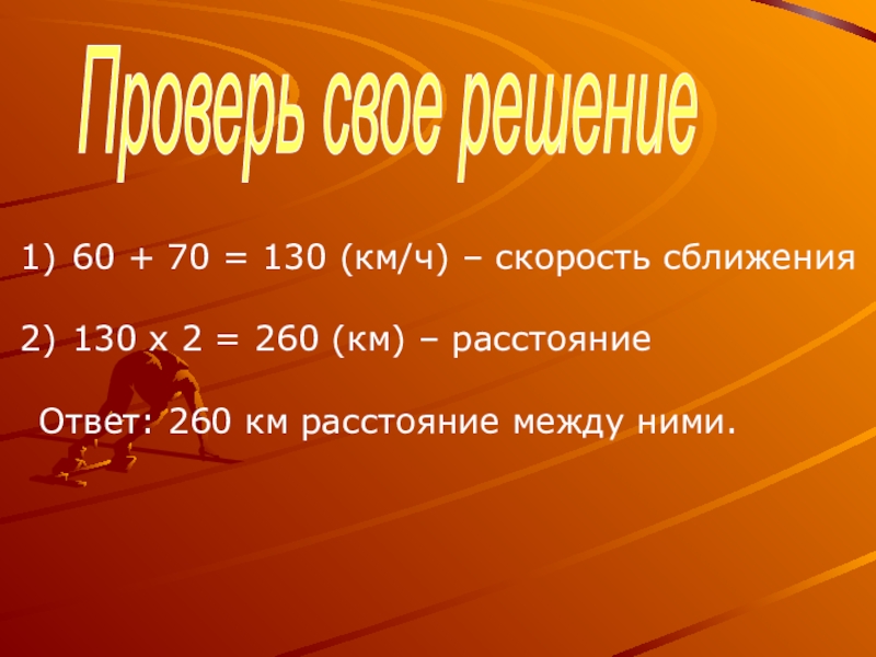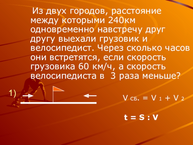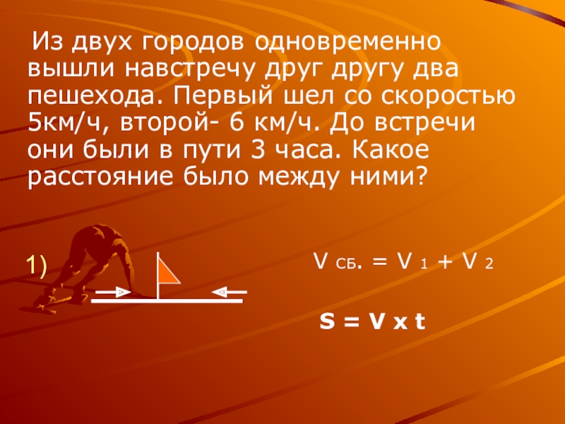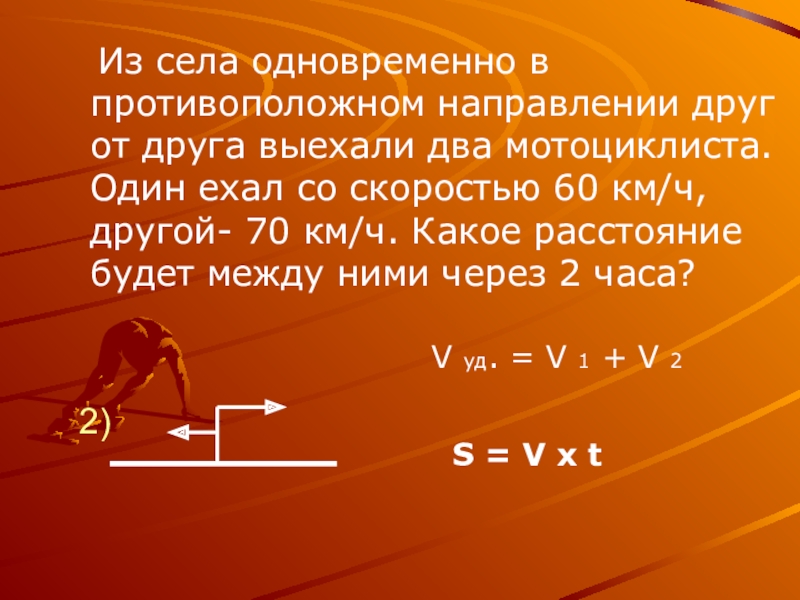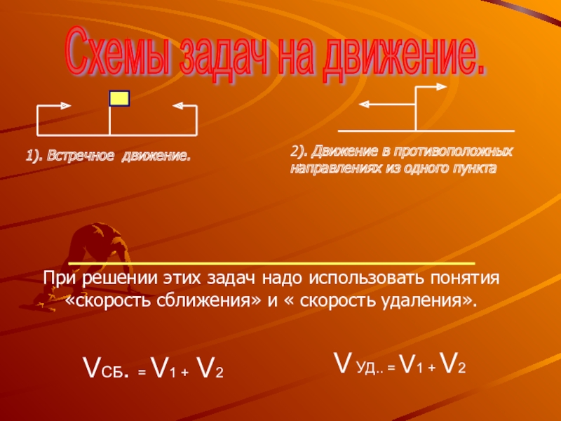 При решении этих задач надо использовать понятия «скорость сближения» и « скорость удаления».