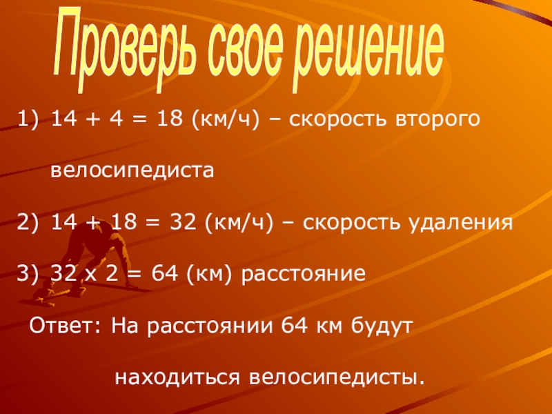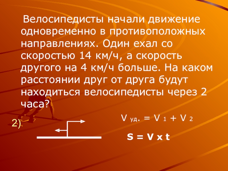 14 + 16 = 30(км/ч) – скорость удаления