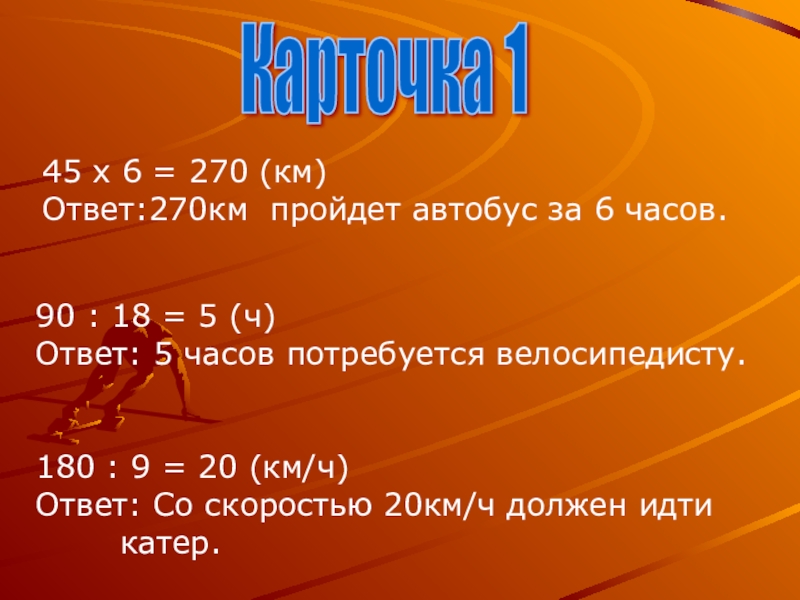 Ответ: Со скоростью 20км/ч должен идти катер.