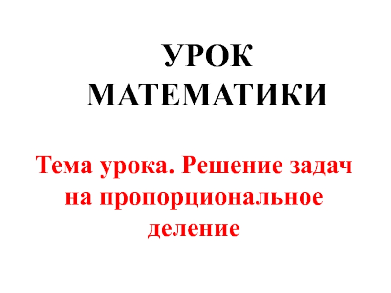 УРОК МАТЕМАТИКИТема урока. Решение задач на пропорциональное деление