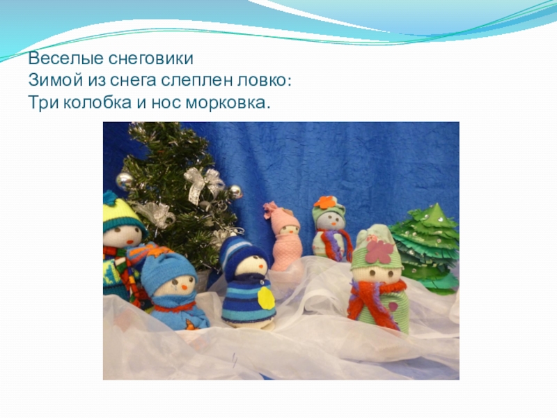 Слайд 4Веселые снеговики Зимой из снега слеплен ловко: Три колобка и нос морковка.
