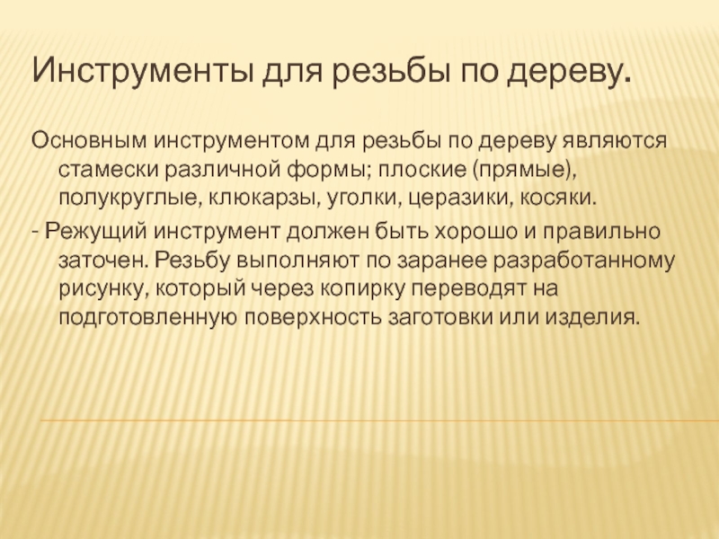 Основным инструментом для резьбы по дереву являются