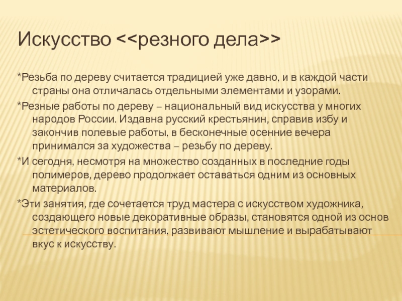 *Резьба по дереву – вид декоративно – прикладного искусства