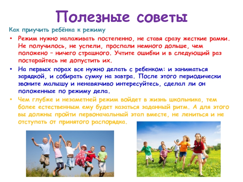 Полезные советыКак приучить ребёнка к режимуРежим нужно налаживать постепенно, не ставя сразу жесткие рамки. Не получилось, не успели,