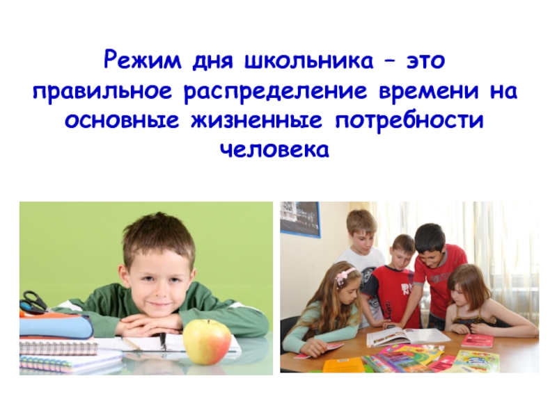 Слайд 2Режим дня школьника – это правильное распределение времени на основные жизненные