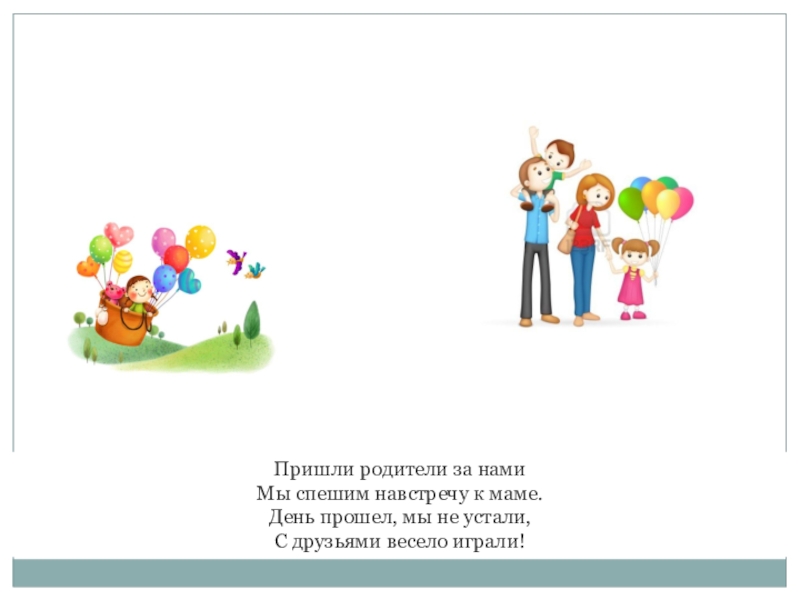 Пришли родители за нами  Мы спешим навстречу к маме. День прошел, мы не устали,  С друзьями весело