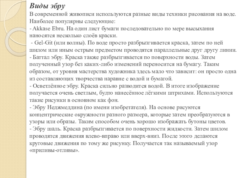 Слайд 2 Эбру — это старинная изобразительная техника,