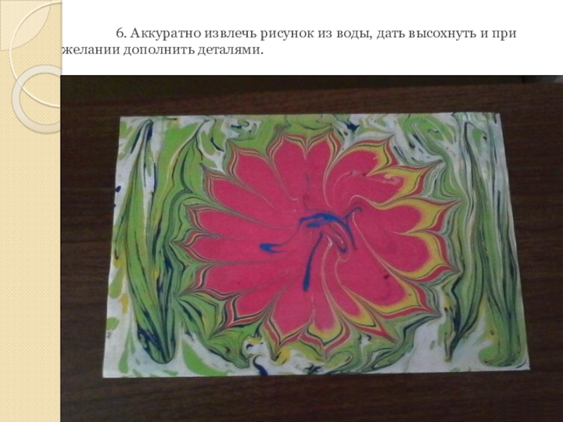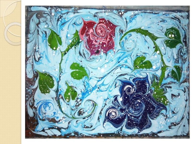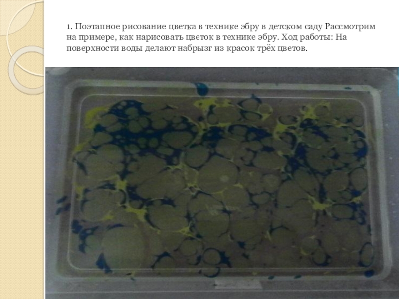 Слайд 71. Поэтапное рисование цветка в технике эбру в детском саду Рассмотрим