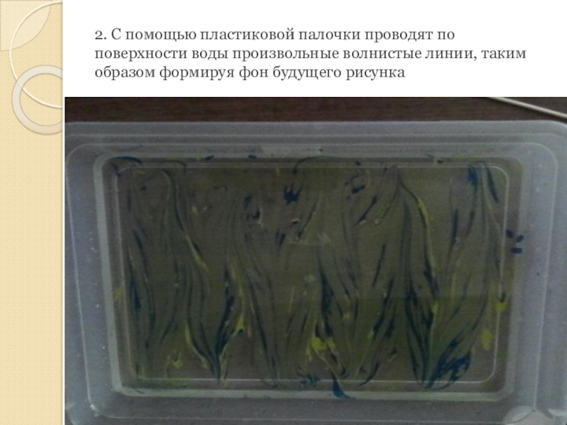 Слайд 82. С помощью пластиковой палочки проводят по поверхности воды произвольные волнистые