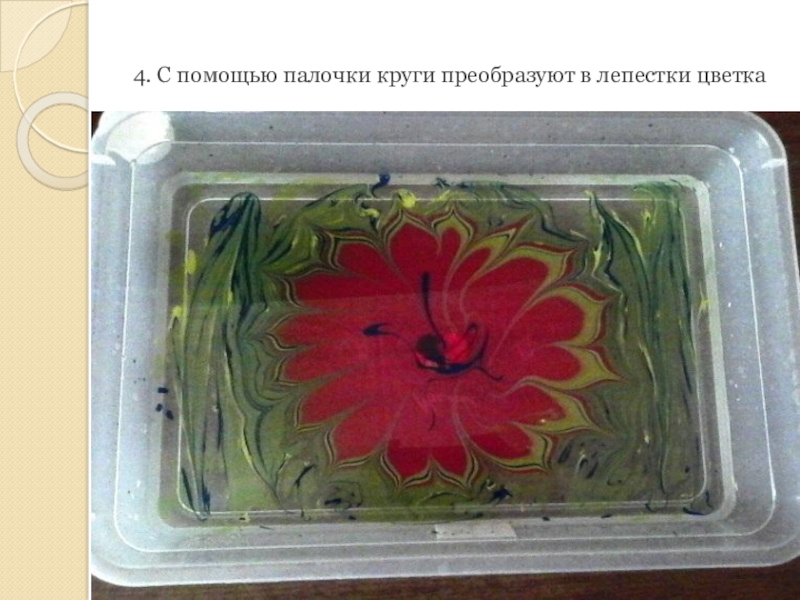 Слайд 104. С помощью палочки круги преобразуют в лепестки цветка