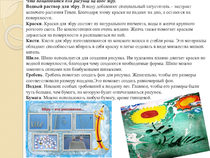 Слайд 5Что понадобится для рисунка на воде эбру.