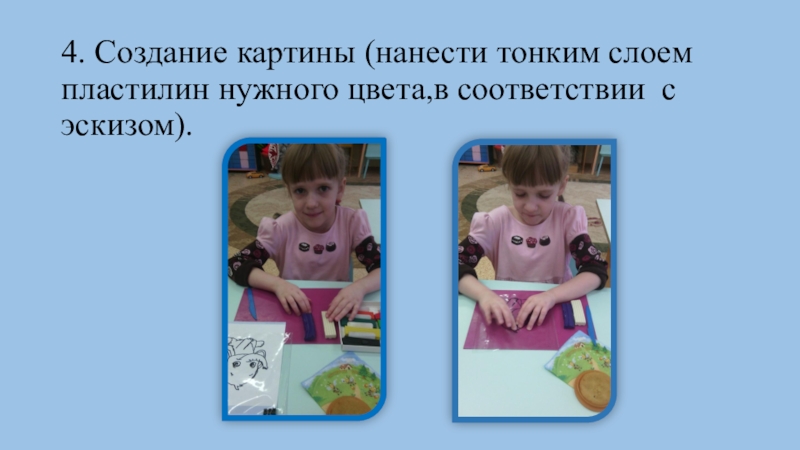 Слайд 244. Создание картины (нанести тонким слоем пластилин нужного цвета,в соответствии с