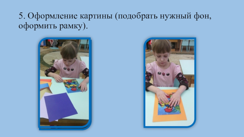 3. Познакомить с разными способами оформления работы(изготовление рамки, подбор цветного фона).