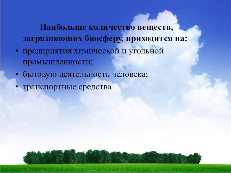 Наибольше количество веществ, загрязняющих биосферу, приходится