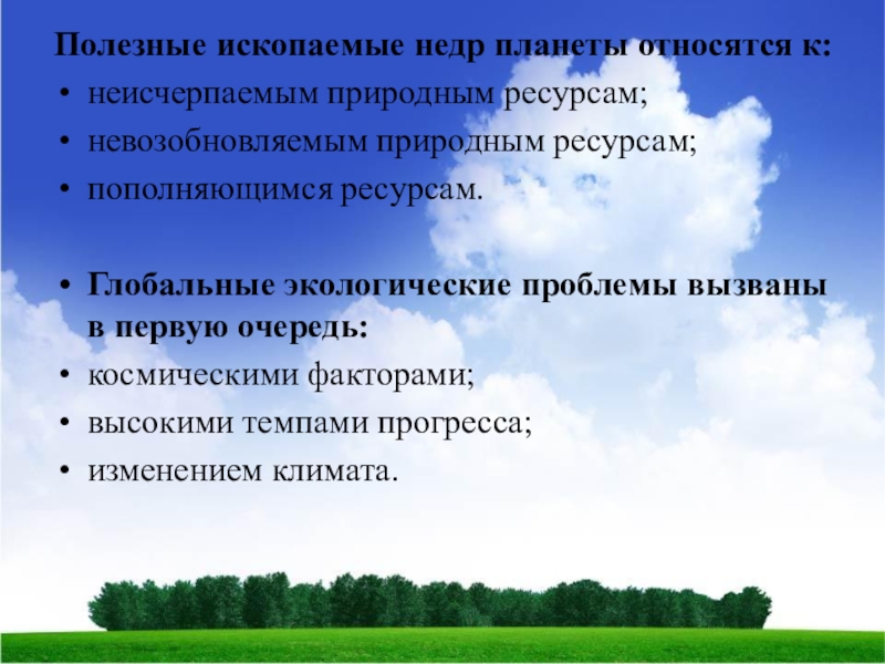 Слайд 32Полезные ископаемые недр планеты относятся к: