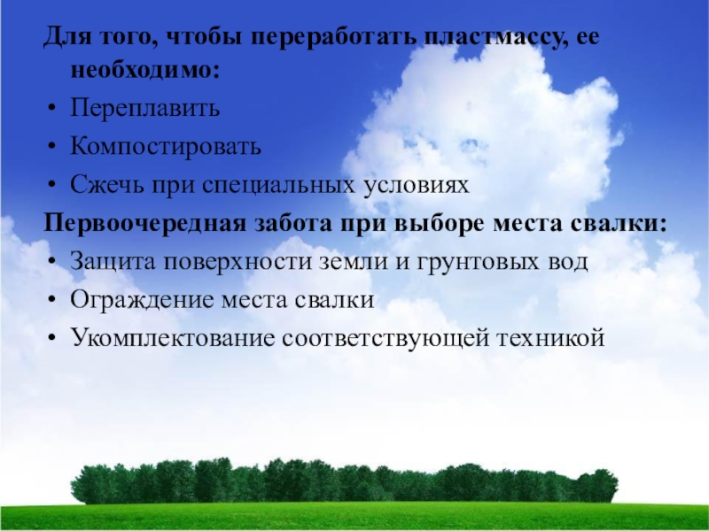 Слайд 27Для того, чтобы переработать пластмассу, ее необходимо: