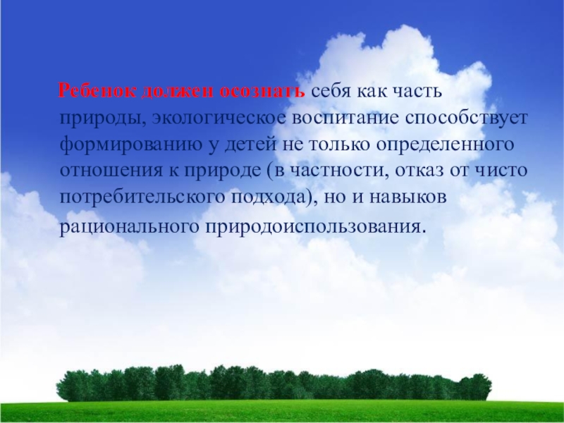 Слайд 7 Ребенок должен осознать себя как часть природы, экологическое воспитание