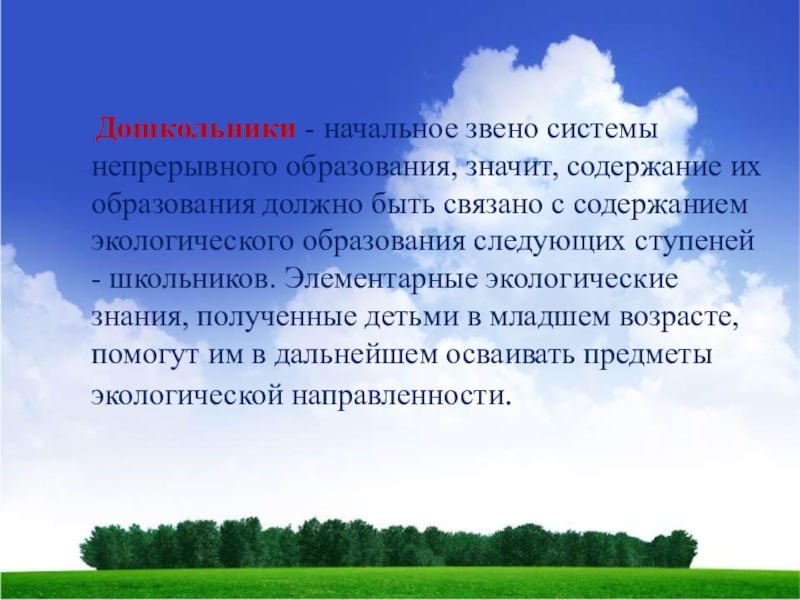 Слайд 6 Дошкольники - начальное звено системы непрерывного образования, значит, содержание