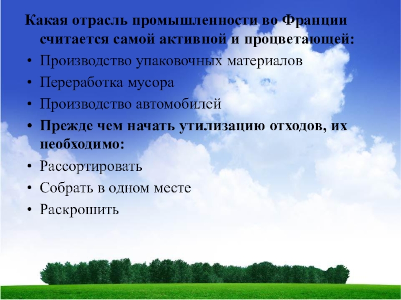 Слайд 26Какая отрасль промышленности во Франции считается самой активной и процветающей:
