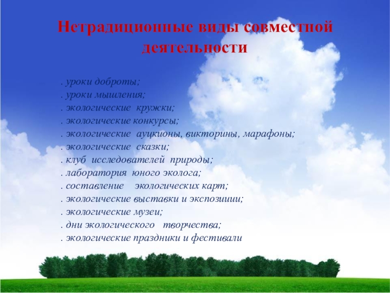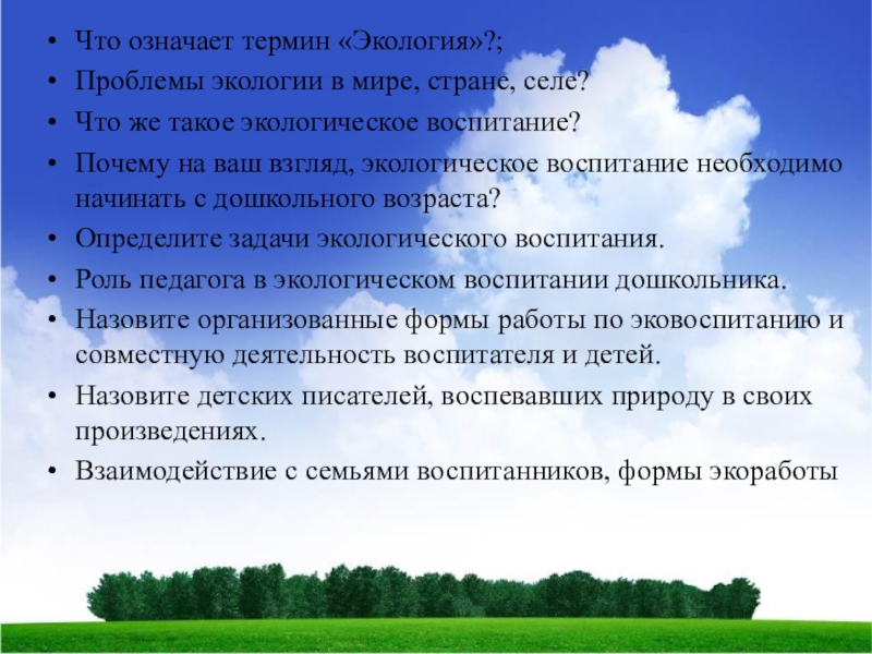 Назовите организованные формы работы по эковоспитанию и совместную деятельность воспитателя и детей.