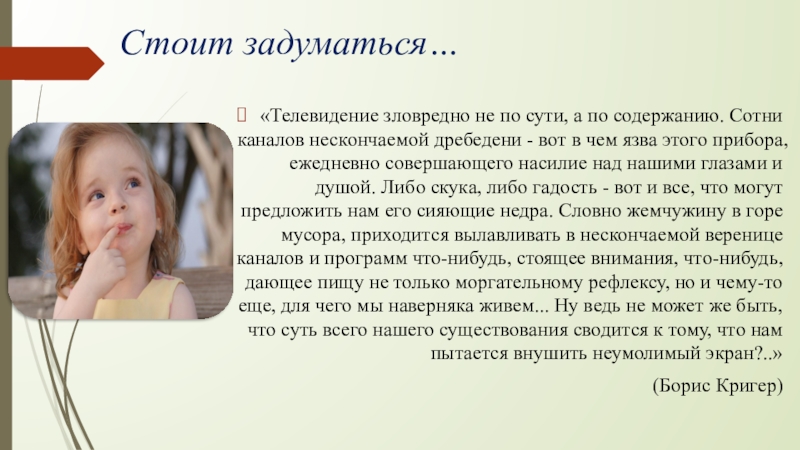 «Телевидение зловредно не по сути, а по содержанию. Сотни каналов