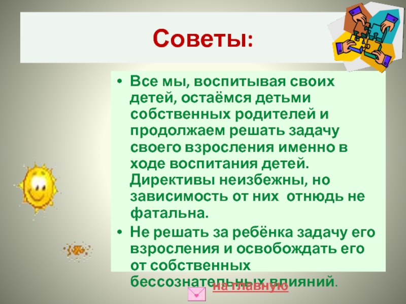Выход: их всегда тянет в тёплую атмосферу родительской семьи, в зависимость.