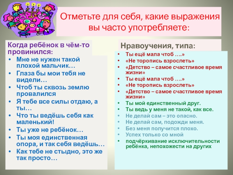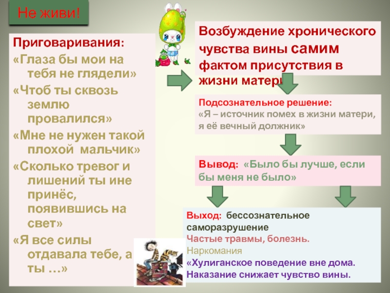Возбуждение хронического чувства вины самим фактом присутствия в жизни матери