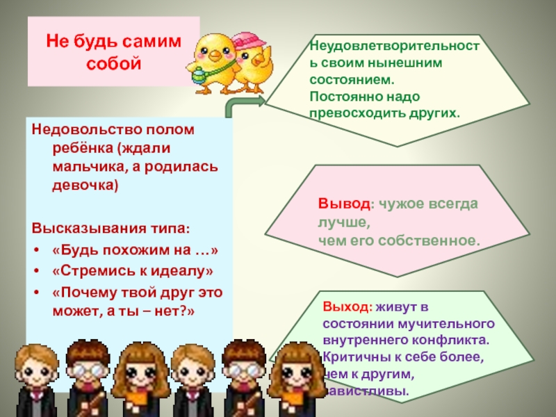 Вывод: стремиться быстрее взрослеть, подавлять свои детские желания