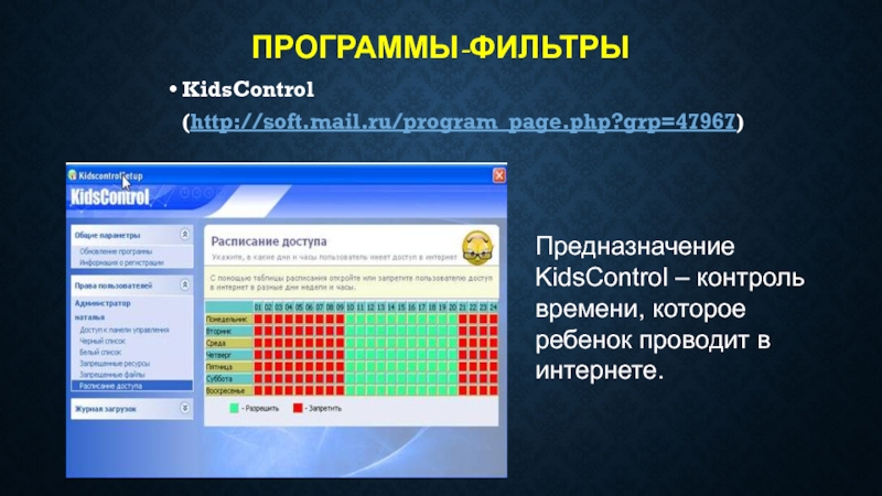 Предназначение KidsControl – контроль времени, которое ребенок проводит в интернете.