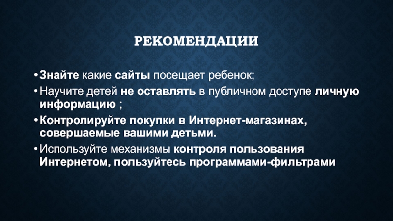 Используйте механизмы контроля пользования Интернетом, пользуйтесь программами-фильтрами