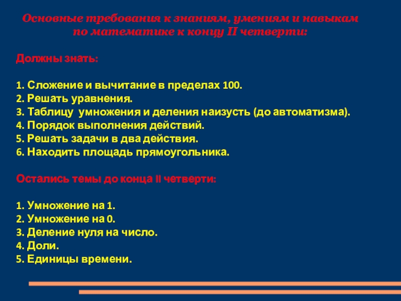 Основные требования к знаниям, умениям и навыкам по математике к концу