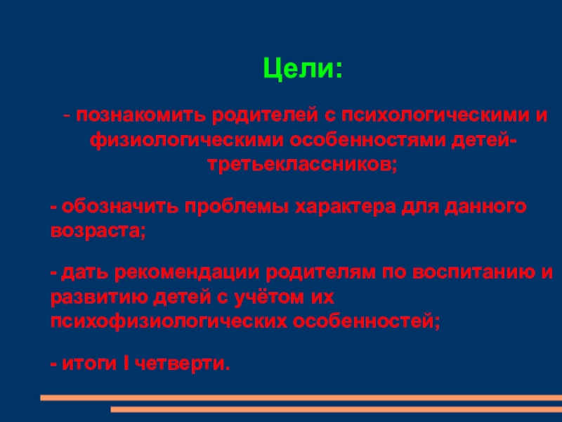 - познакомить родителей с психологическими и физиологическими особенностями детей-третьеклассников;