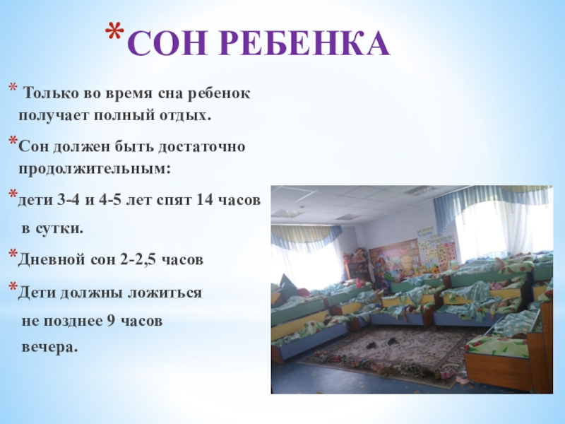 деятельности: отдыха, сна, питания, пребывания на свежем воздухе