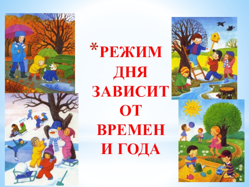 Слайд 5РЕЖИМ ДНЯ ЗАВИСИТ ОТ ВРЕМЕНИ ГОДА
