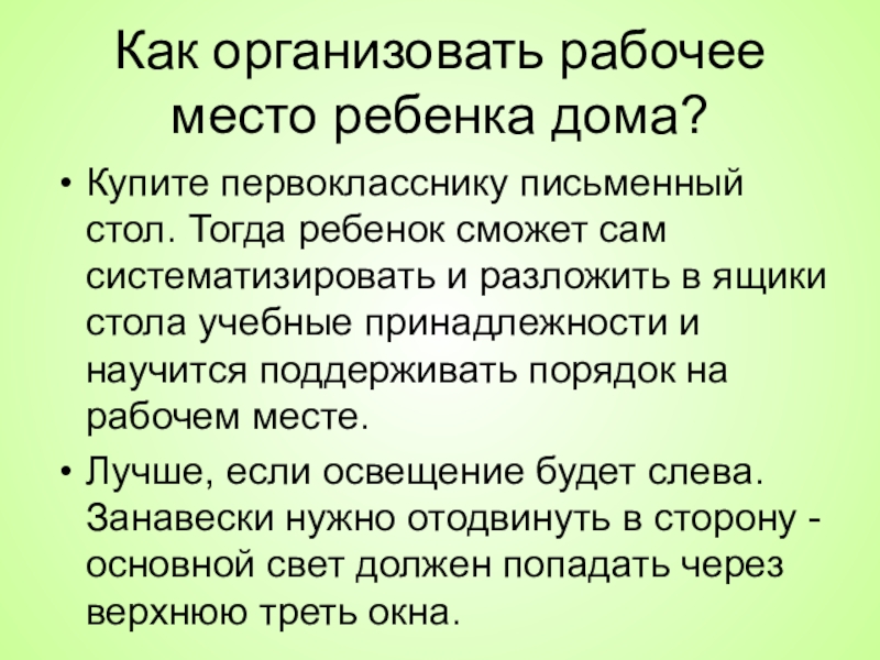 Слайд 22Как правильно организовать дома рабочее место ученика?
