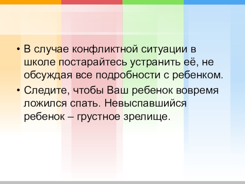 В случае конфликтной ситуации в школе постарайтесь устранить её, не обсуждая