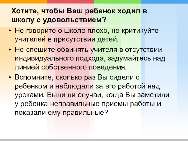 Слайд 12Хотите, чтобы Ваш ребенок ходил в школу с удовольствием?