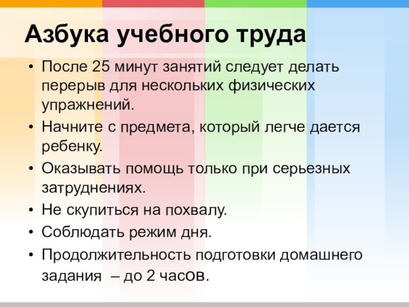 Посоветуйтесь с ребенком и начните с ликвидации тех учебных трудностей, которые наиболее значимы для него самого. Здесь вы скорее встретите понимание и единодушие.