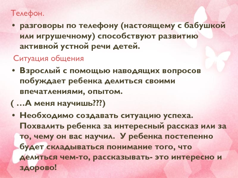 разговоры по телефону (настоящему с бабушкой или игрушечному) способствуют развитию активной
